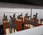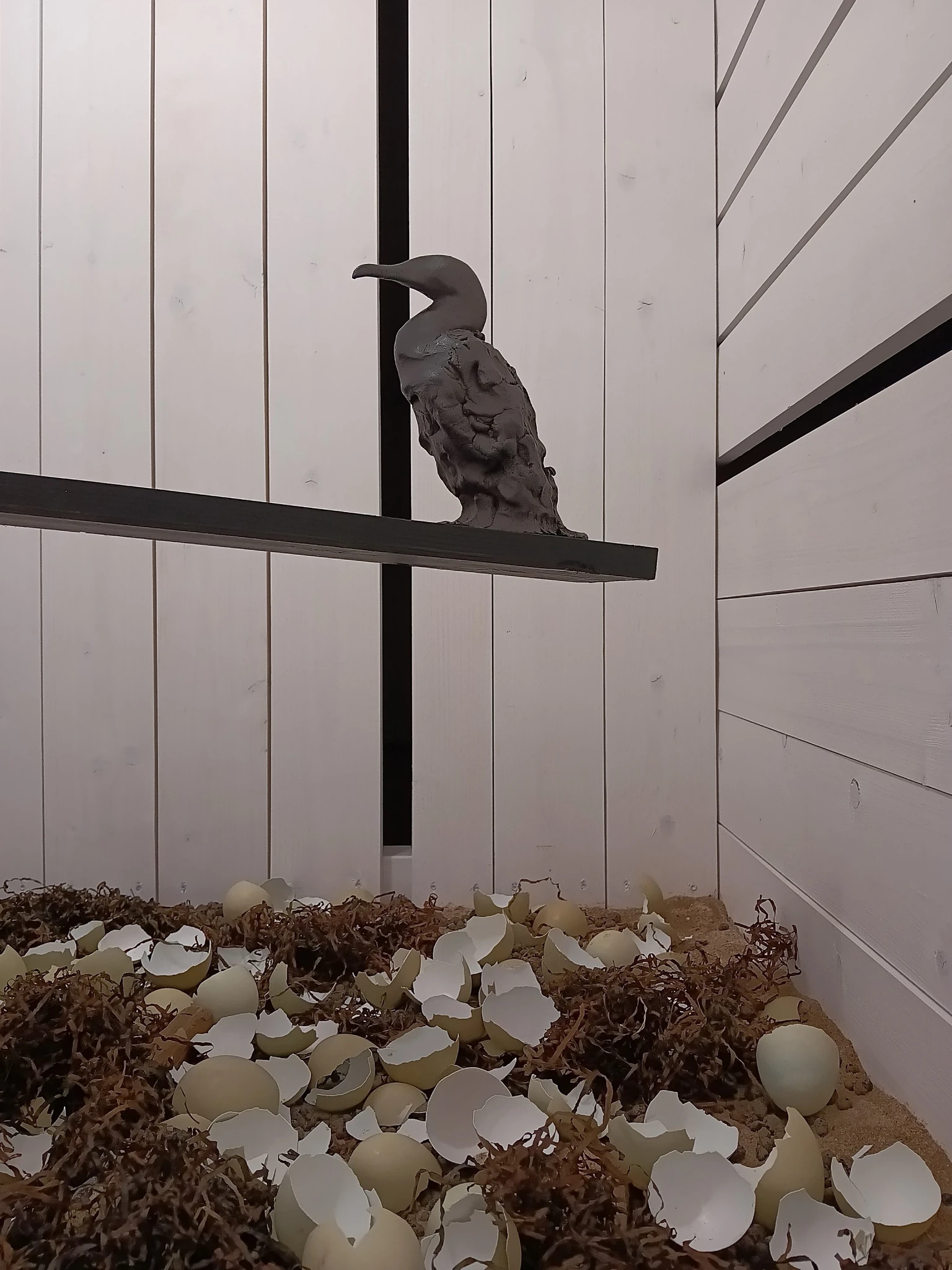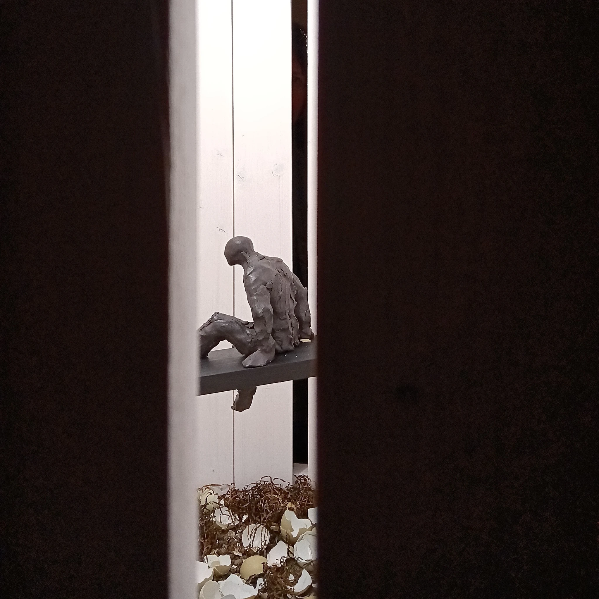 Tihti kohtab soovitust, vahel lausa nõudmist, kastist välja mõelda. Mõtlesime seekord niivõrd kastist välja, et jõudsime kasti. Näituseruumis oli kuus umbes kuupmeetri suurust, jalgadel seisvat, seest valgeks värvitud ja valgustatud laudadest kasti. Kastidesse piiludes avanes iga kasti sisemuses erinev keraamilistest skulptuuridest koosnev installatsioon. Meie - Rave Puhm jaTiina Kaljuste tegime koos näituse ja samal ajal tegime kolm väikest personaalnäitust. Olime koos ja samas eraldi.
